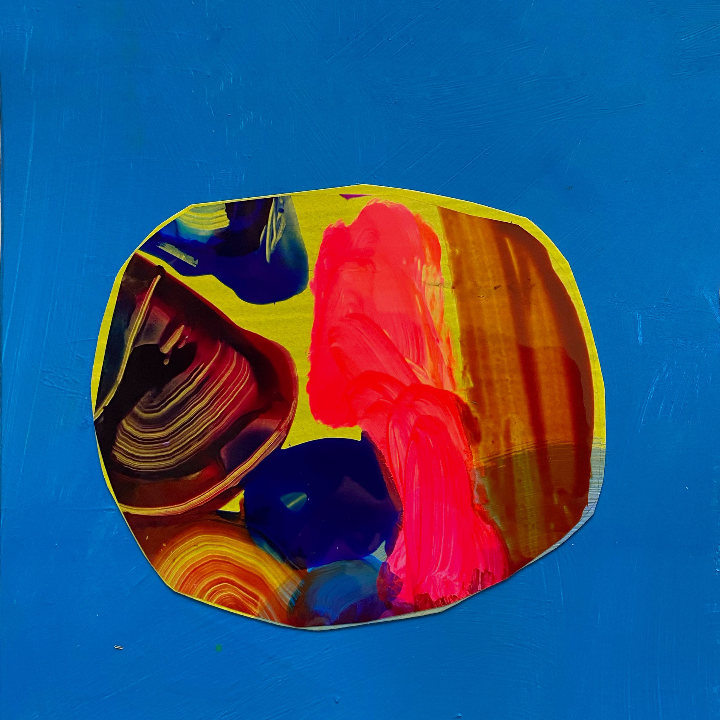 “Color Collaboration – Blue circle”, 8” x 8”, film, paper and acrylic on paper
