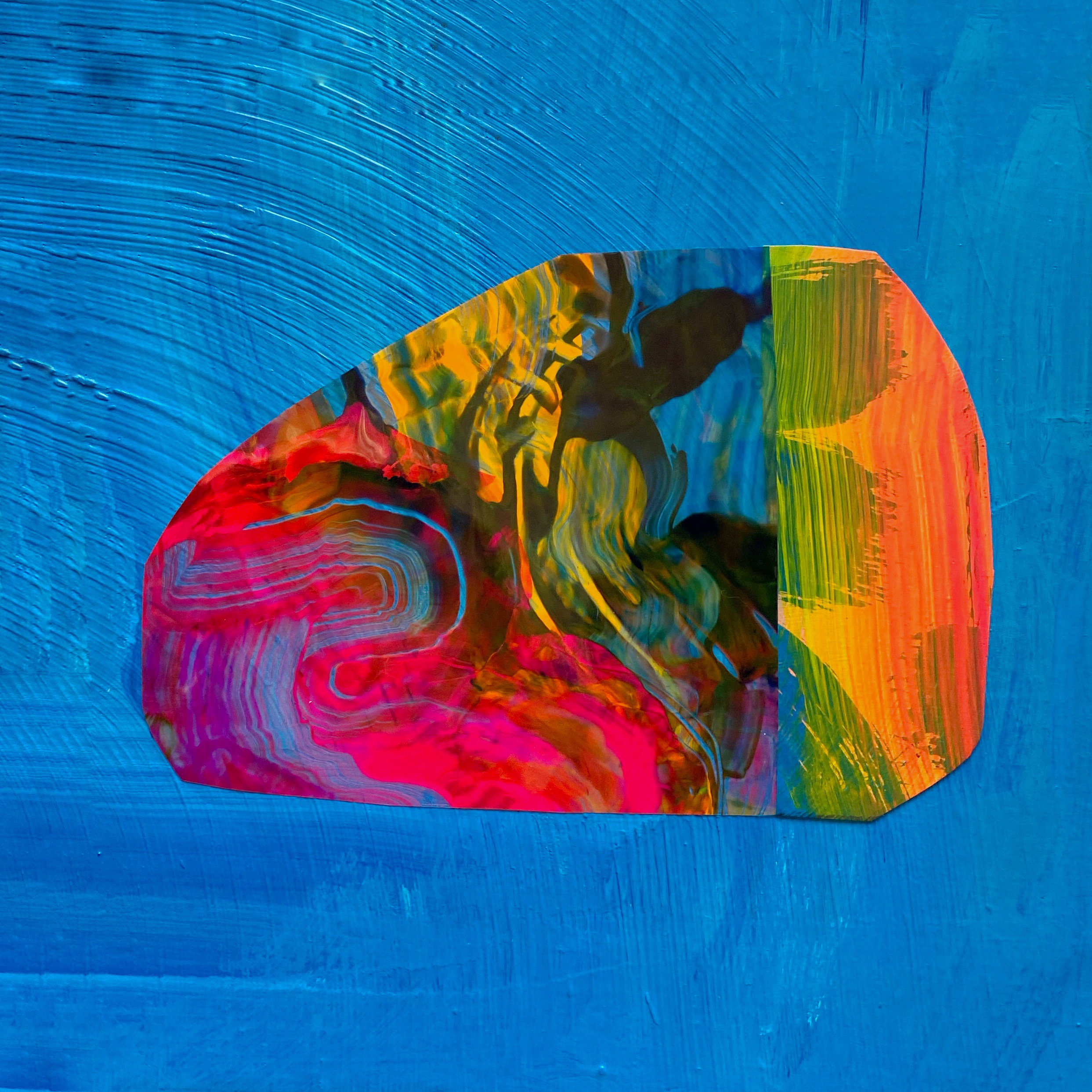 “Color Collaboration – Royal Blue”, 8” x 8”, film, paper and acrylic on paper, SOLD