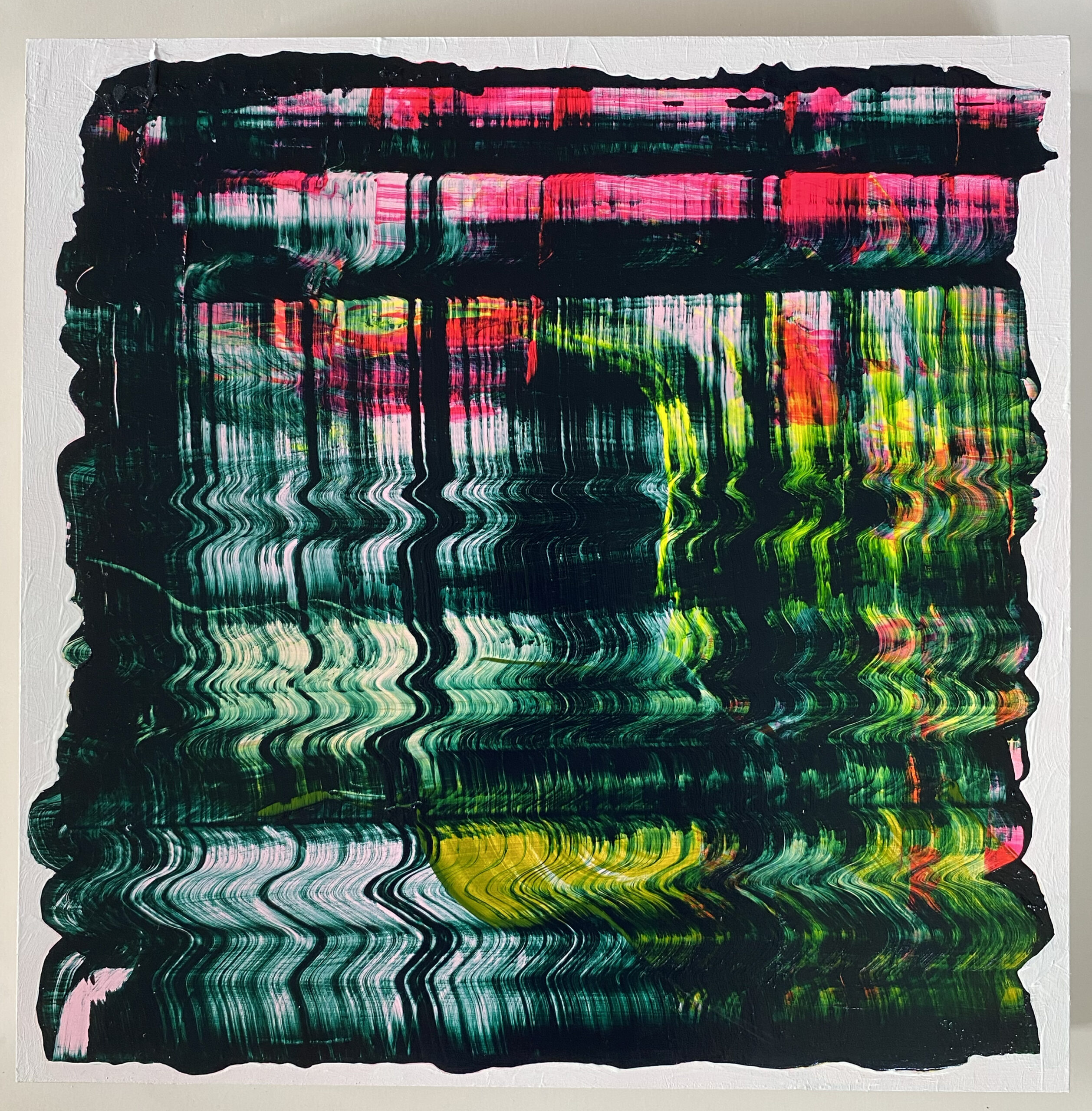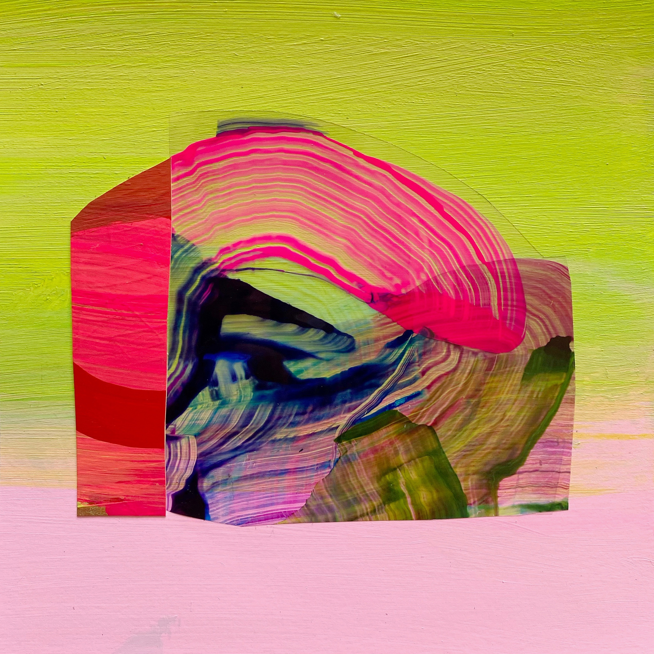 “Color Collaboration – Pink & green”, 8” x 8”, film, paper and acrylic on paper