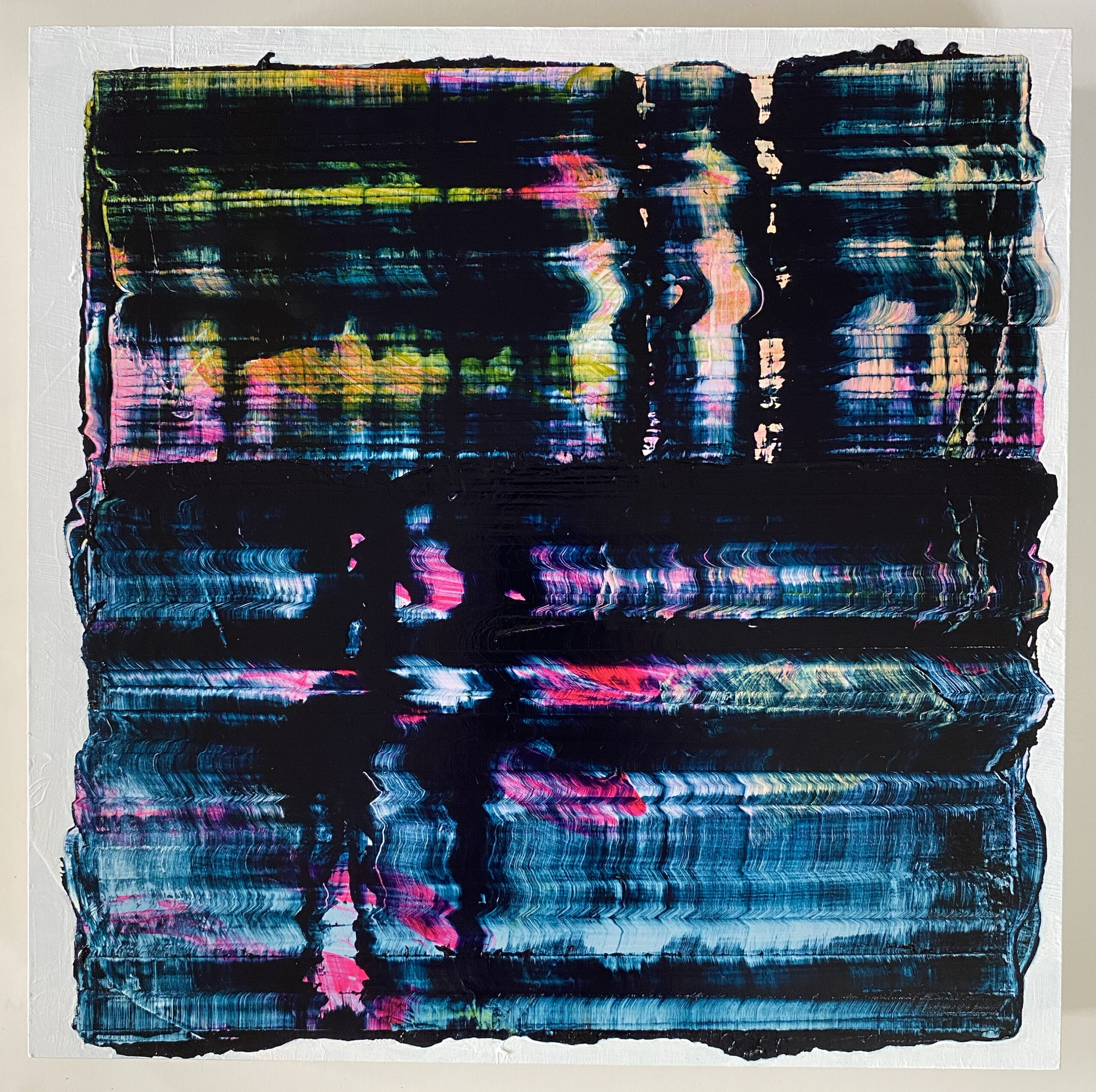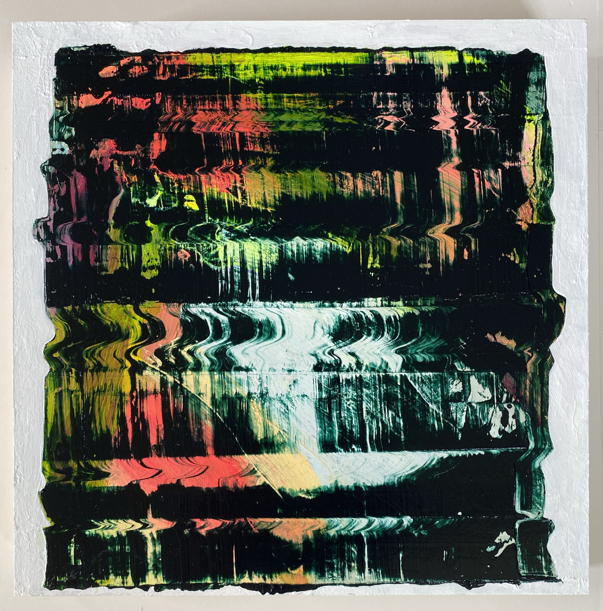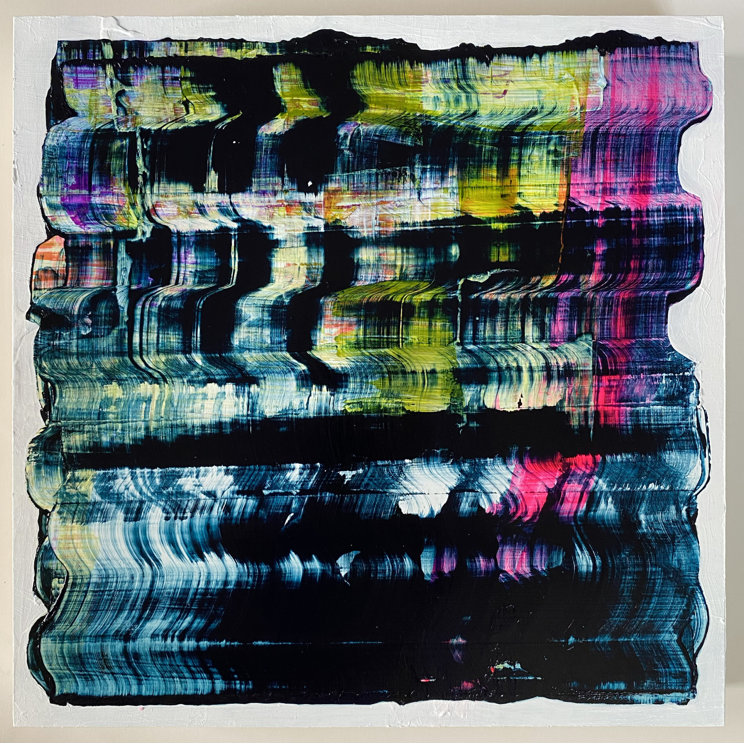 Barber will debut a collection of new paintings, “Watching Bubbles”, in September 2024 in the Dové Gallery alongside a series of works by sculptor William Bennett. Featured below is the collection – visit the gallery in person next month to view. Barber continues to use paint as her primary medium, but her early career in digital art heavily influences her current work. This manifests through experimentation with materials and layering of paint. In this latest body of work, Barber paints directly on transparent substrates and suspends acrylic paint on top of clear acrylic gel. These methods present unique layering techniques all her own. Barber utilizes color, gesture, and shape to convey facets of her personal memories and experiences. The color palette used in “Watching Bubbles” represents memories of closely watching blown bubbles as a child. Some of the paintings in the series fondly recall memories of attending carnival rides at night, an annual event which brought an aura of magic and excitement into Barber’s childhood life in rural Southside Virginia. The “Watching Bubbles” collection will be on view within Barber and Bennett were selected and paired by Executive Director & Chief Curator Kristen Chiacchia from a competitive pool of artists from last year’s Teeny Tiny Trifecta 6. Tyler and Andrew Greeley, the National Endowment for the Arts, and the Virginia Commission for the Arts generously sponsored this exhibition.