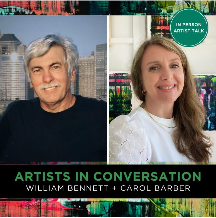 “Curiouser and Curiouser: A Dialogue in Abstraction”, a two-person exhibition featuring the work of William Bennet and Carol Barber in the Dové Gallery from September 6 – 27, 2024