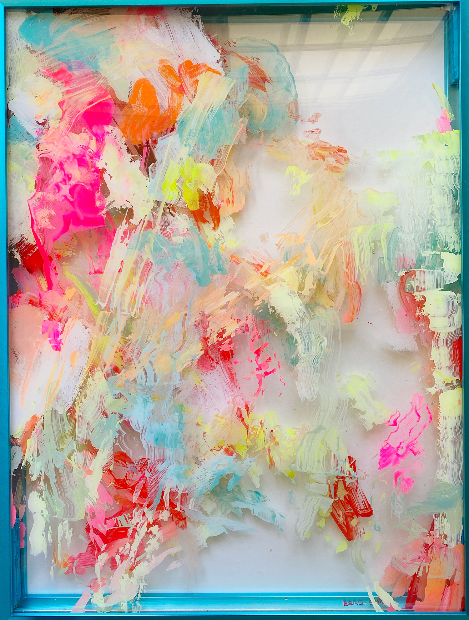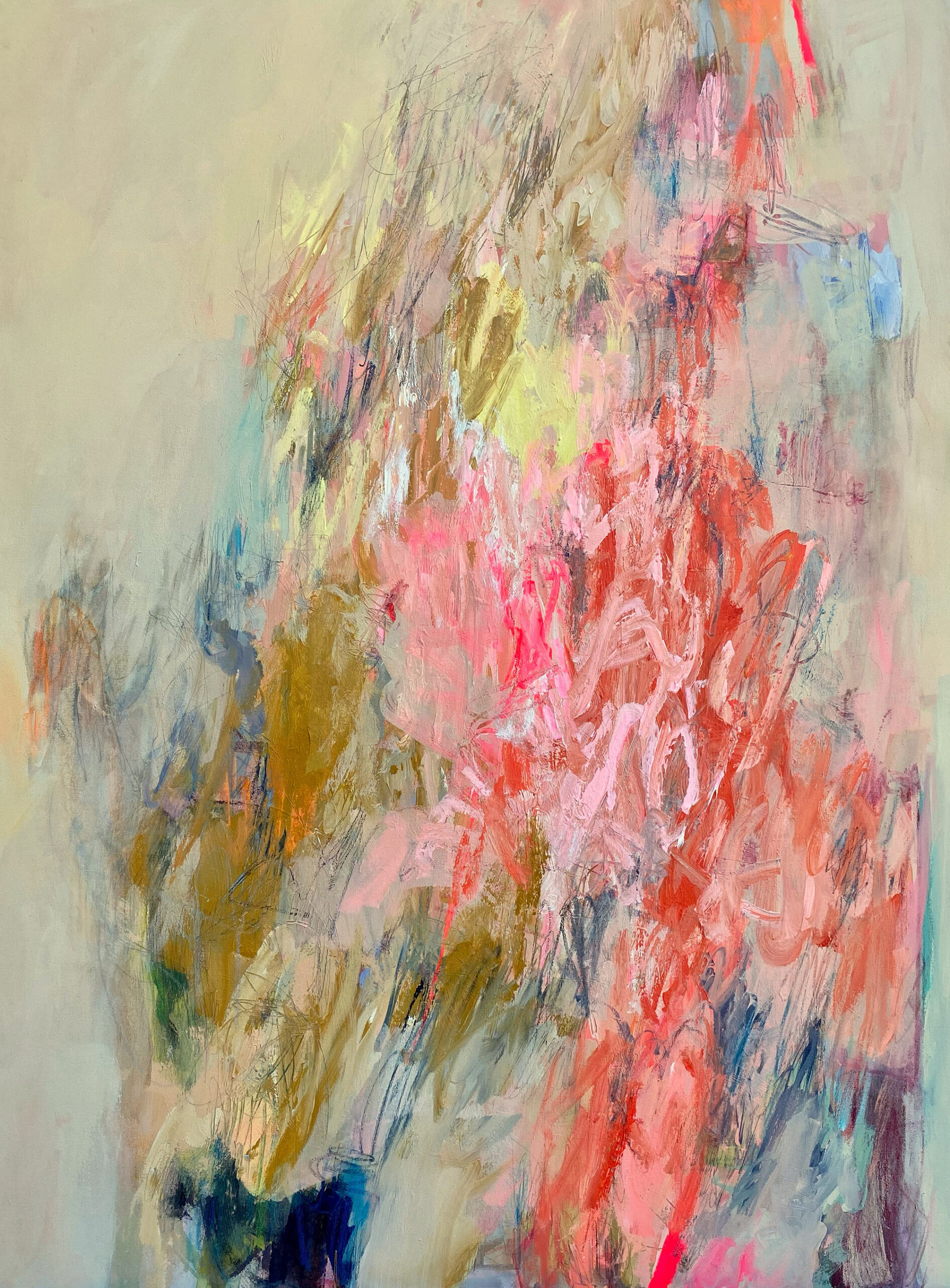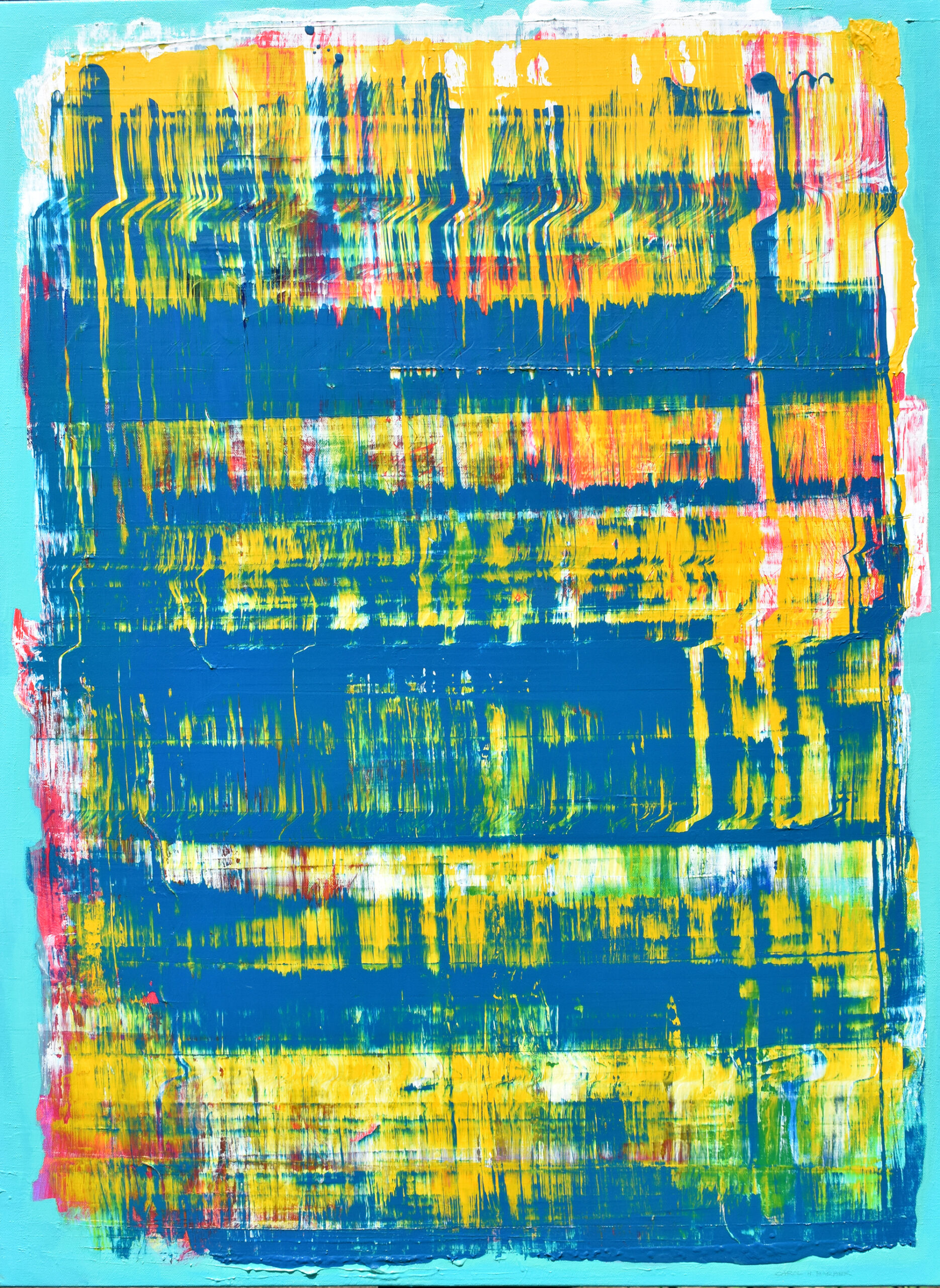 “Summer Adventure”, 48” x 60”, acrylic and watercolor crayon on canvas, SOLD