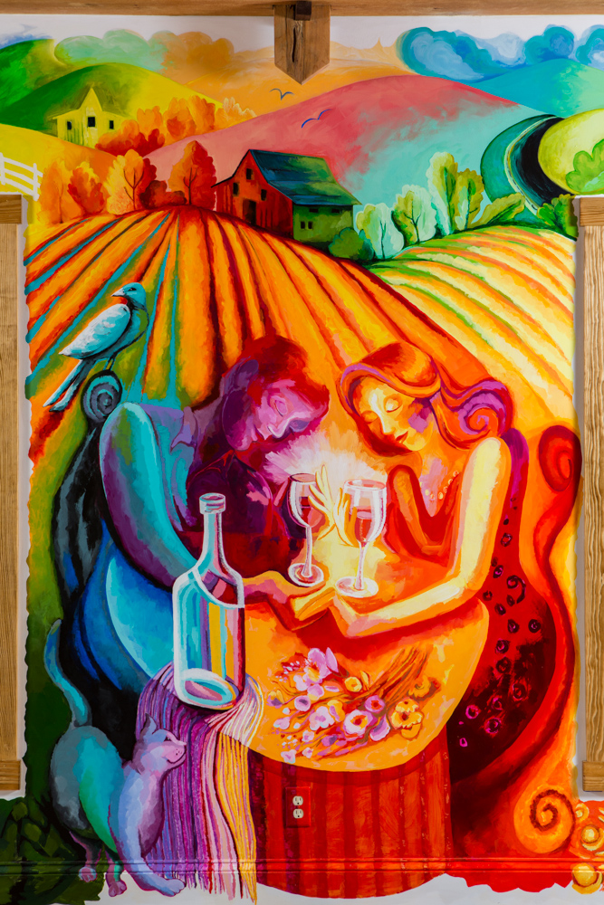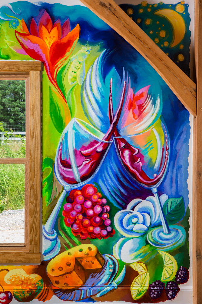 My mural is on view at Chestnut Oak Vineyard, near my studio in Barboursville, VA. If you are touring the vineyards and would like to visit the studio as well, please contact me by email at carolsart@hughes.net.